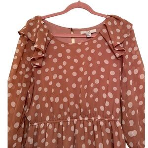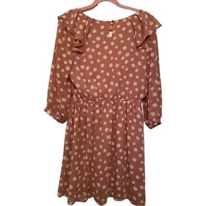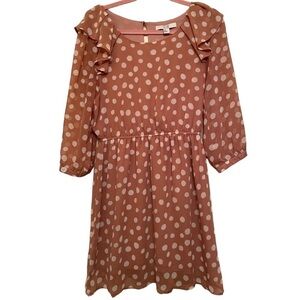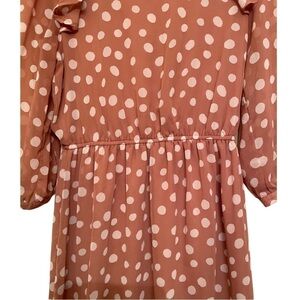 Forever 21 Pink Polka Dot Dress Size Small, long sleeve lined dress with puff sleeves and cinched waist