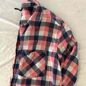Forever 21 Pink and Blue Plaid Button Up shirt Sz Lg