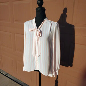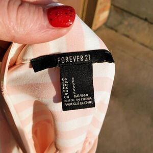Forever 21 Pink and White Striped Tie Front High Low Blouse Size Small