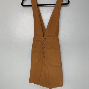 Super cute, 70s retro vibe pinafore dress. Two front pocket, button front, straps adjustable by button on back. **striped shirt not included**