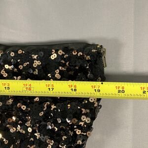 Condition: Gently worn, no visible flaws. Surfaces of sequins intact and shiny. Zipper closure functions smoothly, no missing or damaged beads, and fabric shows no signs of staining or tearing.