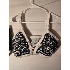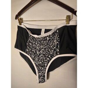 Forever 21 Plus Size 1X Sporty Bikini Swimsuit Black White 2 Piece High Waist