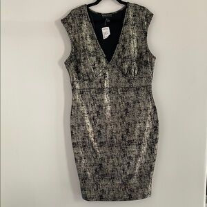 Forever 21 Plus Size 2X Black Gold Metallic Foil Dress NWT