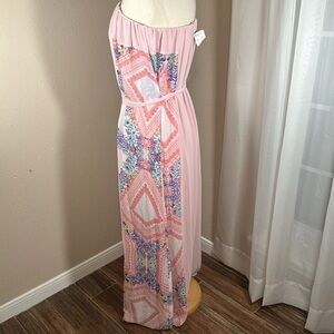 Forever 21 Plus Size 2X Pink Purple Chiffon Floral Tube Top Maxi Dress NEW NWT