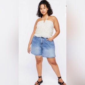 Forever 21 Plus Yellow Polka Dot Print Metallic Ruffled Halter Top Size 0X