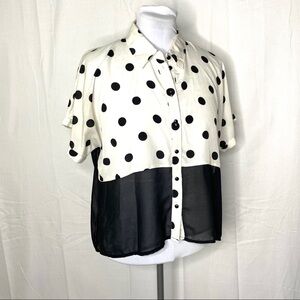 Forever 21 Polka Dot Shirt Black White Chiffon M