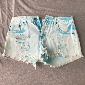 White wash blue denim shorts