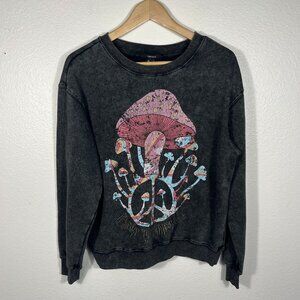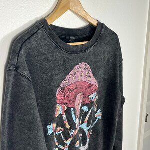 Forever 21 | Psychedelic Mushroom Crewneck Pullover Sweatshirt Heather Black, Sm