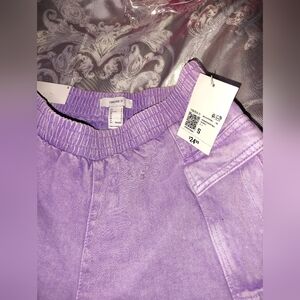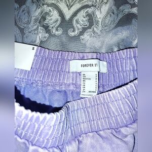 These Forever 21 cargo shorts in a vibrant purple hue offer a stylish and comfortable fit. Crafted from a durable fabric, they feature a high-waisted design and a trendy look. Perfect for casual outings, these shorts are a must-have addition to your wardrobe.