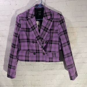 Forever 21 Purple Plaid Jacket Blazer Small NWT