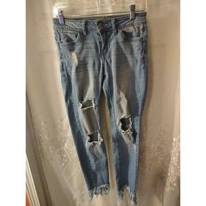 Forever 21 Push Up Jeans Size 27 Blue Distressed Cropped