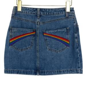 Forever 21 Rainbow Pocket Button Down Denim Skirt Small LGBTQIA+ PRIDE