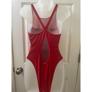 Forever 21 Red One Piece High Leg Graphic CRISSCROSS BACK Swimsuit Sundaze Sz SEXY BEACHY