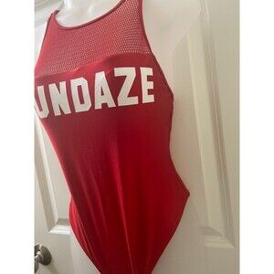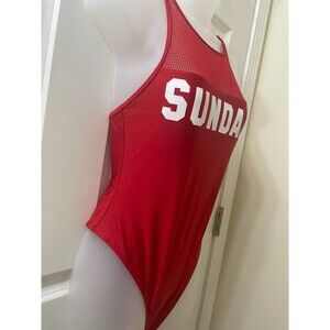 Forever 21 Red One Piece High Leg Graphic BATHING Suit “Sundaze” LG BEACHY