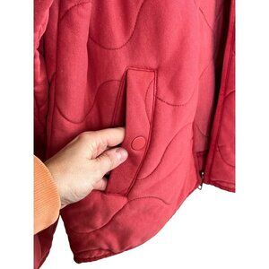 Stay cozy and stylish with this brand new with tags Forever 21 quilted bomber jacket. Designed in a rich red hue with a modern wave-stitch quilted pattern, this lightweight jacket is perfect for layering in fall and spring. Features a zip-front closure, snap-button pockets, elasticized hem for a flattering fit, and a soft casual feel.