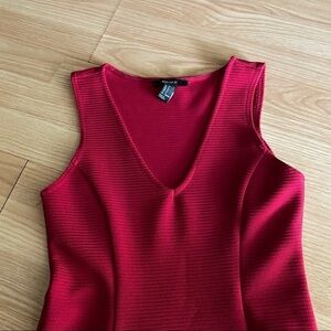 Forever 21 Red V-Neck Fit and Flare Dress Small