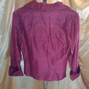 This elegant red blouse from Forever 21 showcases a sophisticated wrap design and a notched collar, perfect for any occasion. The cuffed sleeves add a refined touch, making it a versatile addition to your wardrobe. Its vibrant color and stylish silhouette ensure you make a statement wherever you go.