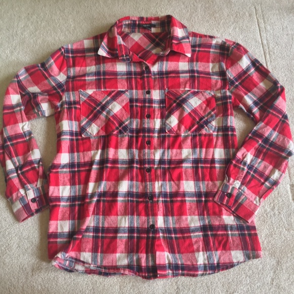 Forever 21 Red and Cream White Flannel Shirt