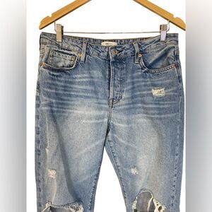 Forever 21 Relaxed Tapered Button Fly High Rise Distressed Jeans Size 31