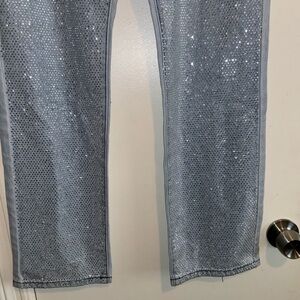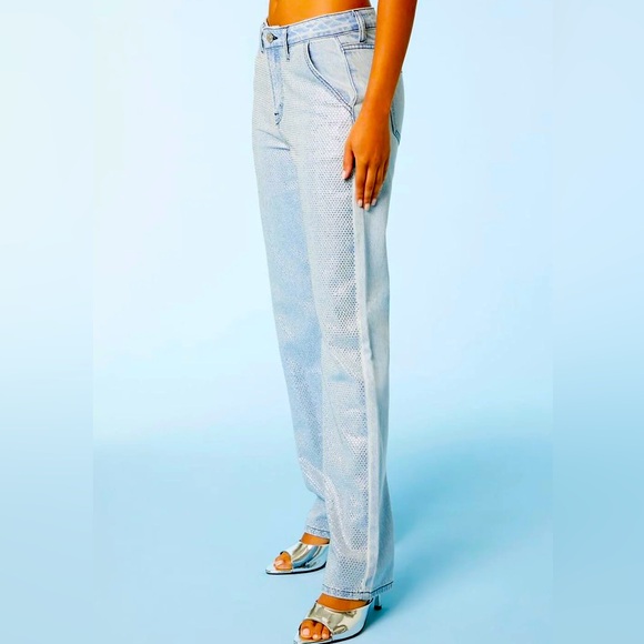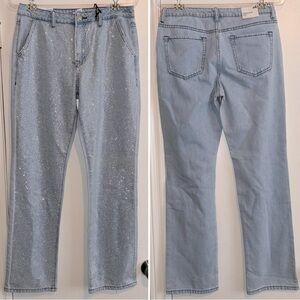 NWT new with tags forever 21 premium bedazzled jeweled denim. Light wash straight leg size 28