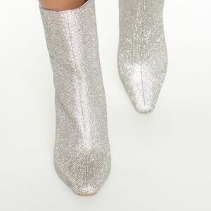 Forever 21 Rhinestone Silver Notched Heel Booties - Like New (Size: 8)