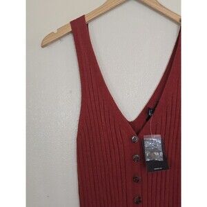 Forever 21 Ribbed Cropped Knit Jumpsuit Womens Size Medium Rust V Neck