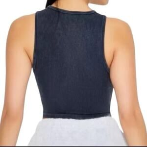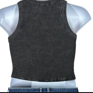 Forever 21 Ribbed Cropped Waffle Knit Muscle Tank Grey Black Size Small
