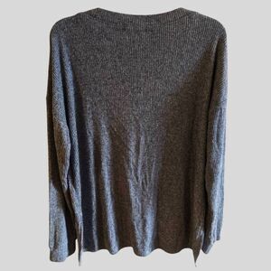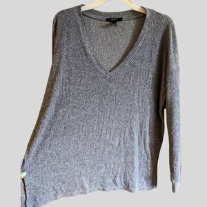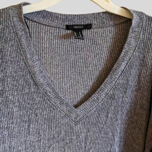 Forever 21 Ribbed Knit Sweater Women's Size Medium Gray V-Neck Slouchy Pullover Cozy Loungewear