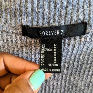 A versatile neutral you’ll wear on repeat—this Forever 21 gray ribbed knit V-neck sweater is the perfect slouchy pullover for effortless style. Women’s size Medium with a relaxed, oversized fit, deep V-neckline, and side-slit hem for easy layering. Soft and lightweight, ideal for transitional weather or year-round coziness.