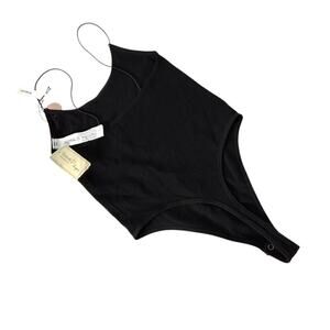 Ribbed Thong Bodysuit by Forever 21. NWT. Excellent Unused Condition. This sleek and versatile bodysuit features a flattering scoop neckline and delicate spaghetti straps for a minimalist look. Made from soft, stretchy ribbed fabric for a comfortable, form-fitting silhouette. Designed with a thong back for a seamless finish under clothing and a two-snap bottom opening for easy wear. Perfect for layering or wearing on its own for a chic, effortless style.