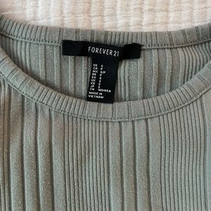 Very cute, slightly cropped ribbed top from Forever 21. The arms are a 3/4 length. The color is a pretty sage green. Perfect light top for fall or pre fall. 🍂