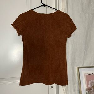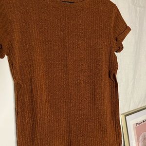 burnt orange color rubbed short sleeve with long side slits. great pre loved condition.