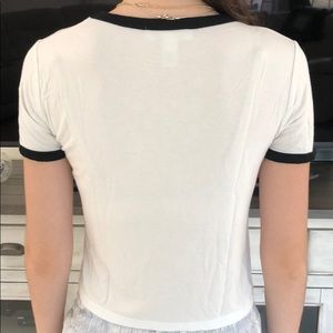 This adorable forever 21 white ringer top is my absolute favorite! This is the perfect short to wear with jeans, a skirt or shorts! Has no stains or blemishes, fits size XS-S. Barely worn!