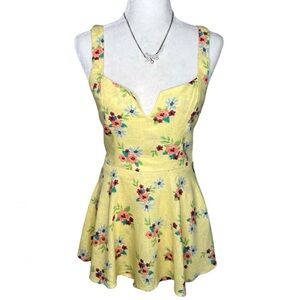 Forever 21 Romper Floral Print Linen Blend Jumpsuit Shorts Yellow Small S