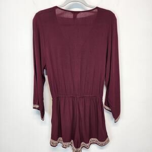Vintage Y2K Forever 21 Romper Size M Burgundy Lace Trim V-neck Long Sleeve Crepe Rayon
