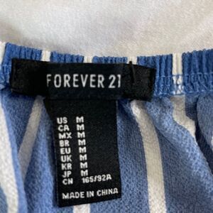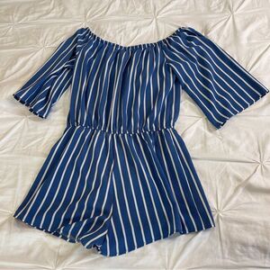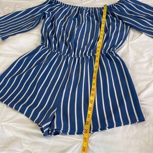 Forever 21 Romper Women M Medium Navy One-Piece Striped Off-Shoulder 3/4 Sleeve