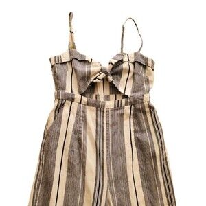 Forever 21 Romper Women Medium Linen Jumpsuit Blue White Stripe Sleeveless