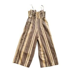 FOREVER 21 Linen Jumpsuit Romper Blue/White Striped Size Medium Pants Sleeveless.