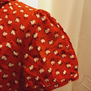 Forever 21 Rooster Print Red Fit and Flare Dress with Belt M