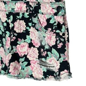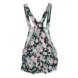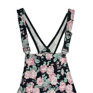 Forever 21 Rose Floral Print Distressed Premium Denim Overalls Size 27