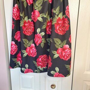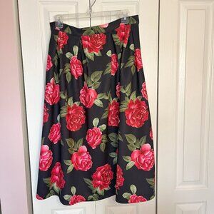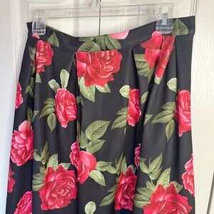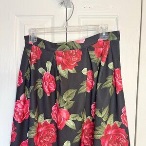 Forever 21 Rose Floral Print Pleated Zipper Midi Pinup Retro Balloon Skirt
