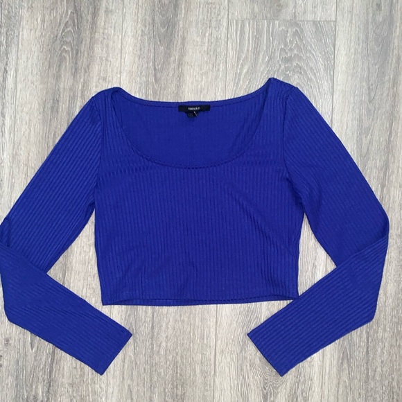 Forever 21 Royal Blue Long Sleeve fitted Crop Top