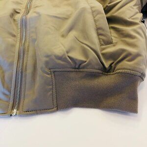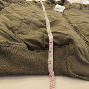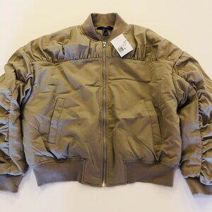 Forever 21 Ruched Bomber Jacket Zip Up Size S Light Olive 2 Pockets Short Length