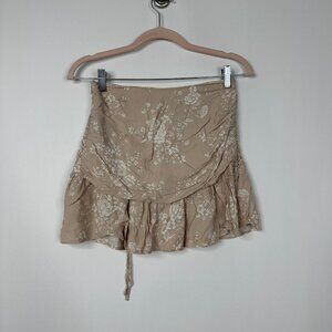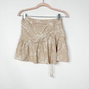 Forever 21 Ruched Drawstring Floral Mini Skirt Beige Medium #A0257 TRB2