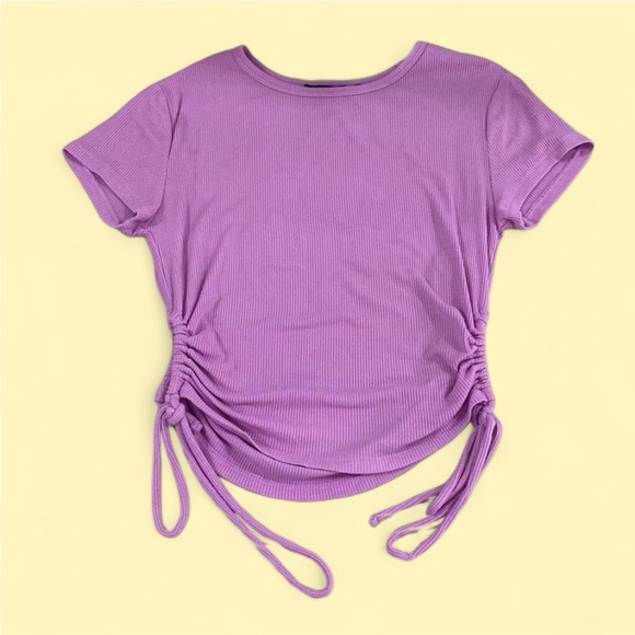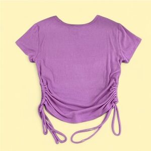 Adjustable tie on the sides, short sleeve, used once, and is in perfect condition!