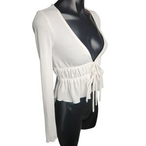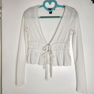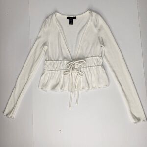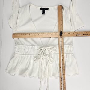 Forever 21 Ruched Tie Crop Top Size S Deep V Neck Cropped Ruffled Hem Boho Y2K