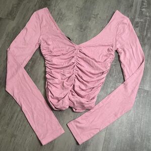 Forever 21 Ruched VNeck Long Sleeve Top Pink Size Small