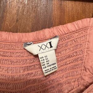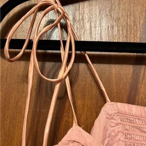 Chic light pink smocked dress. Perfect for everyday style. The straps tie and are adjustable. This is a bit wrinkled from being in storage.