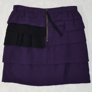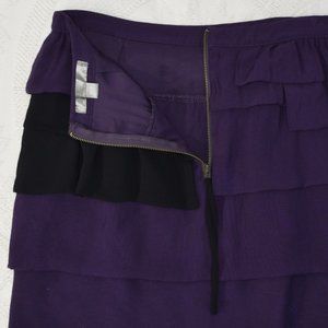 Forever 21 Ruffle Zipper Asymmetrical Mini Evening Cocktail Skirt Purple Black M