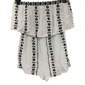 Forever 21 Ruffled Romper with Black and White Embroidery